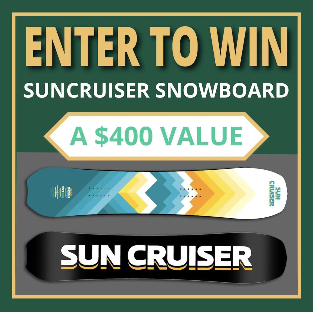 We’re giving away a brand new Sun Cruiser Snowboard! Enter now for your chance to win this prize valued at $400 and hit the slopes this winter in style.